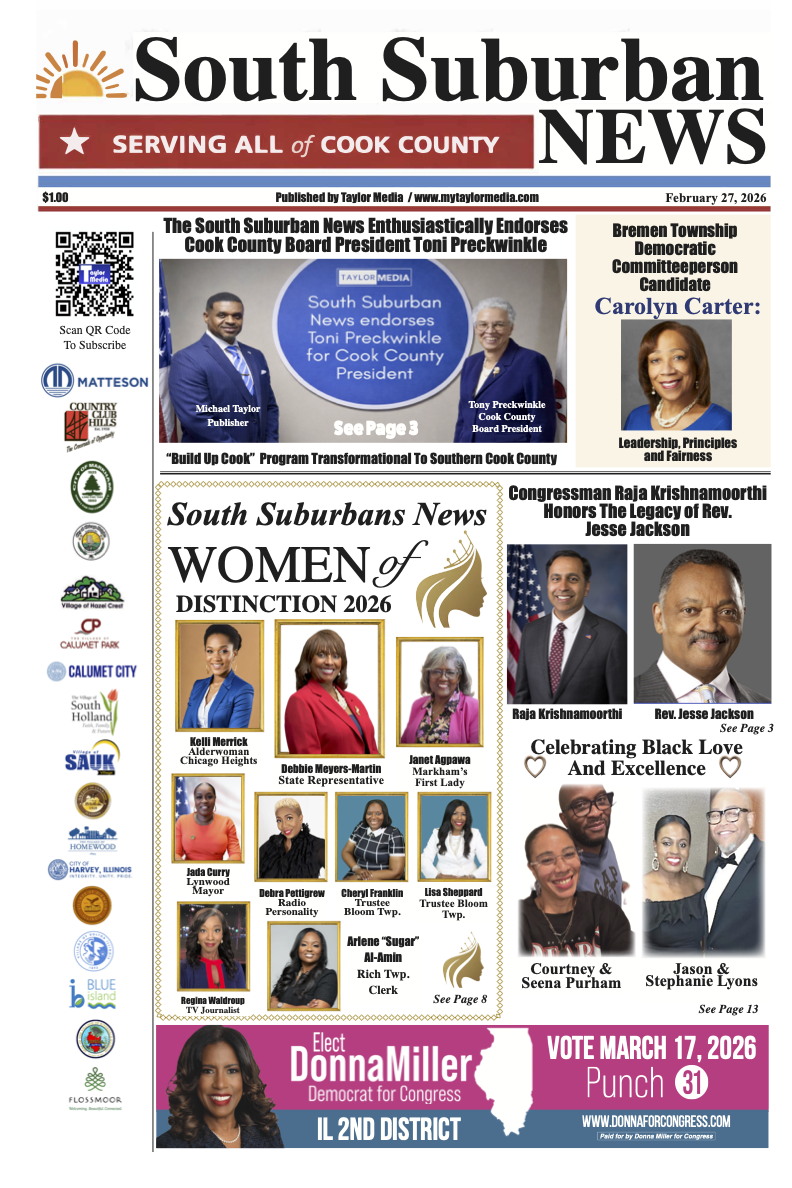 The South Suburban News Enthusiastically EndorsesCook County Board President Toni Preckwinkle “Build Up Cook” Program Transformational To Southern Cook County February 27, 2026